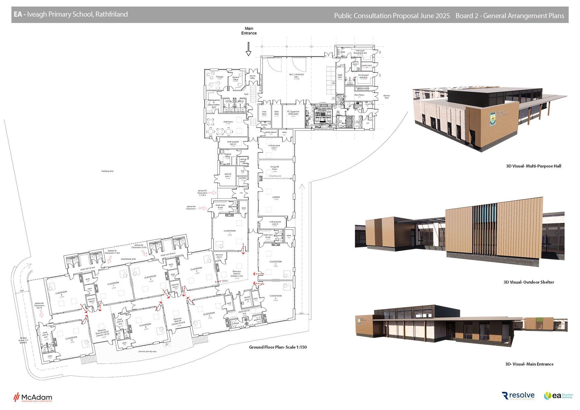 You can view the proposed development plans for the proposal below and complete an online feedback form based on the information provided. The information contained on this website and the feedback forms provided are in addition to a public consultation event which will be held in Iveagh Primary School, 17 Castle Hill, Rathfriland BT34 5NH on Wednesday 11th June 2025 between 4pm and 7pm. Details of this event have been advertised in the local press and notification leaflets circulated within the vicinity of the proposed site.